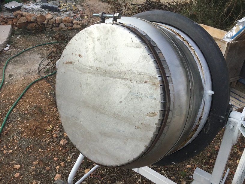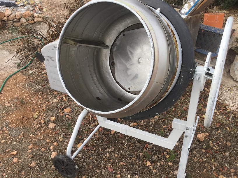 modification du cadre de la bétonnière et installation d'un couvercle.